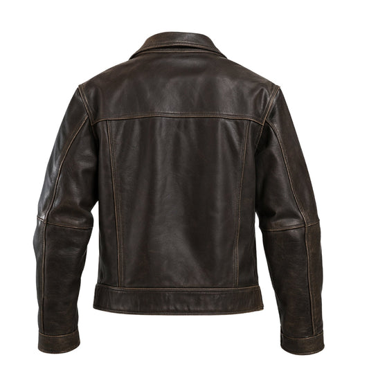 Buy Men Brown Vintage Leather Trucker Jacket – Genuine Leather Icon for Rugged Style, Everyday Comfort, Winter Warmth & All-Season Versatility