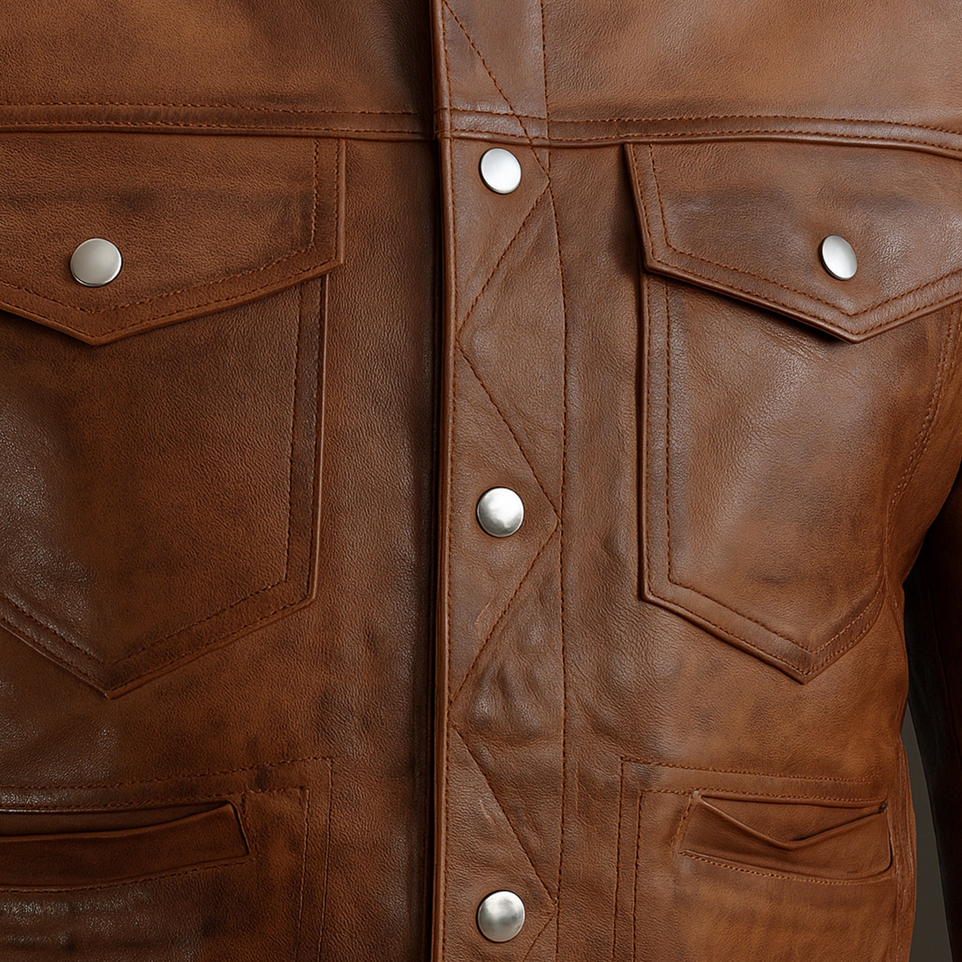 We begin with the bestnatural full-grain and top-grain hidesthat offer durability, strength, and comfort. Unlike imitation or split leather, ours grows richer with age, giving every jacket a character as unique as the person wearing it.